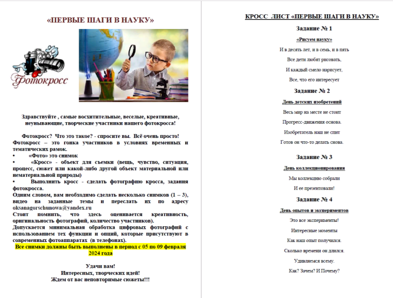 Все снимки должны быть выполнены в период с 05 по 09 февраля 2024 года