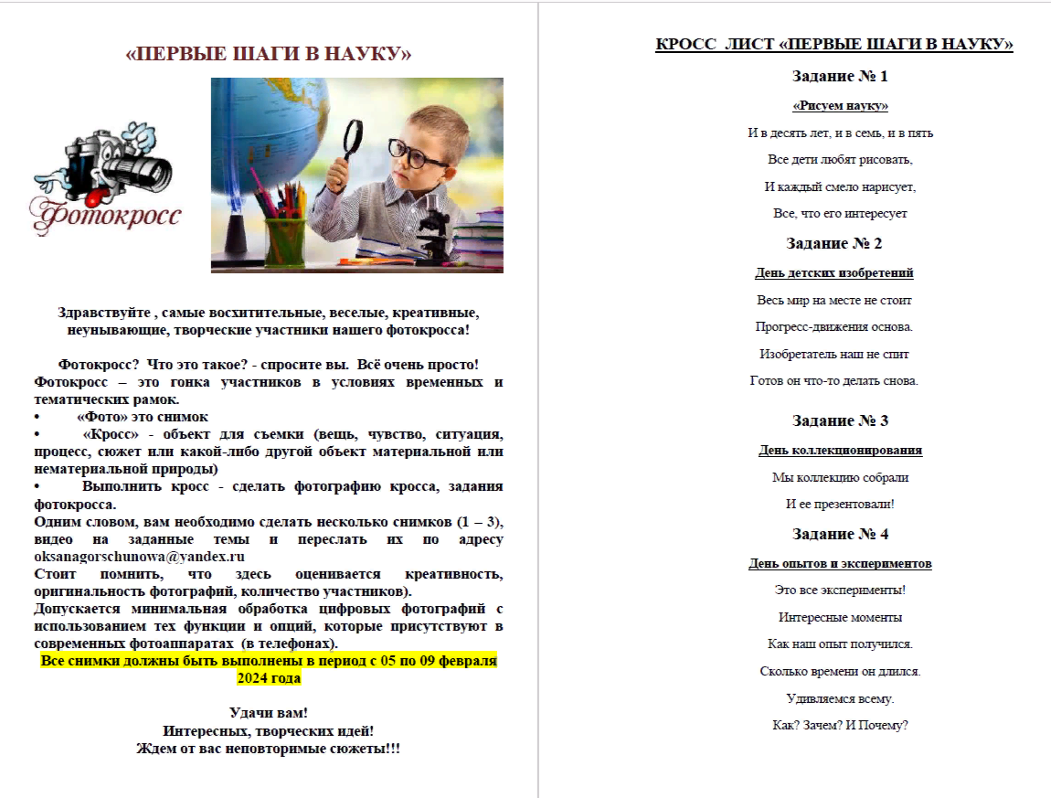 КРОСС ЛИСТ «ПЕРВЫЕ ШАГИ В НАУКУ»