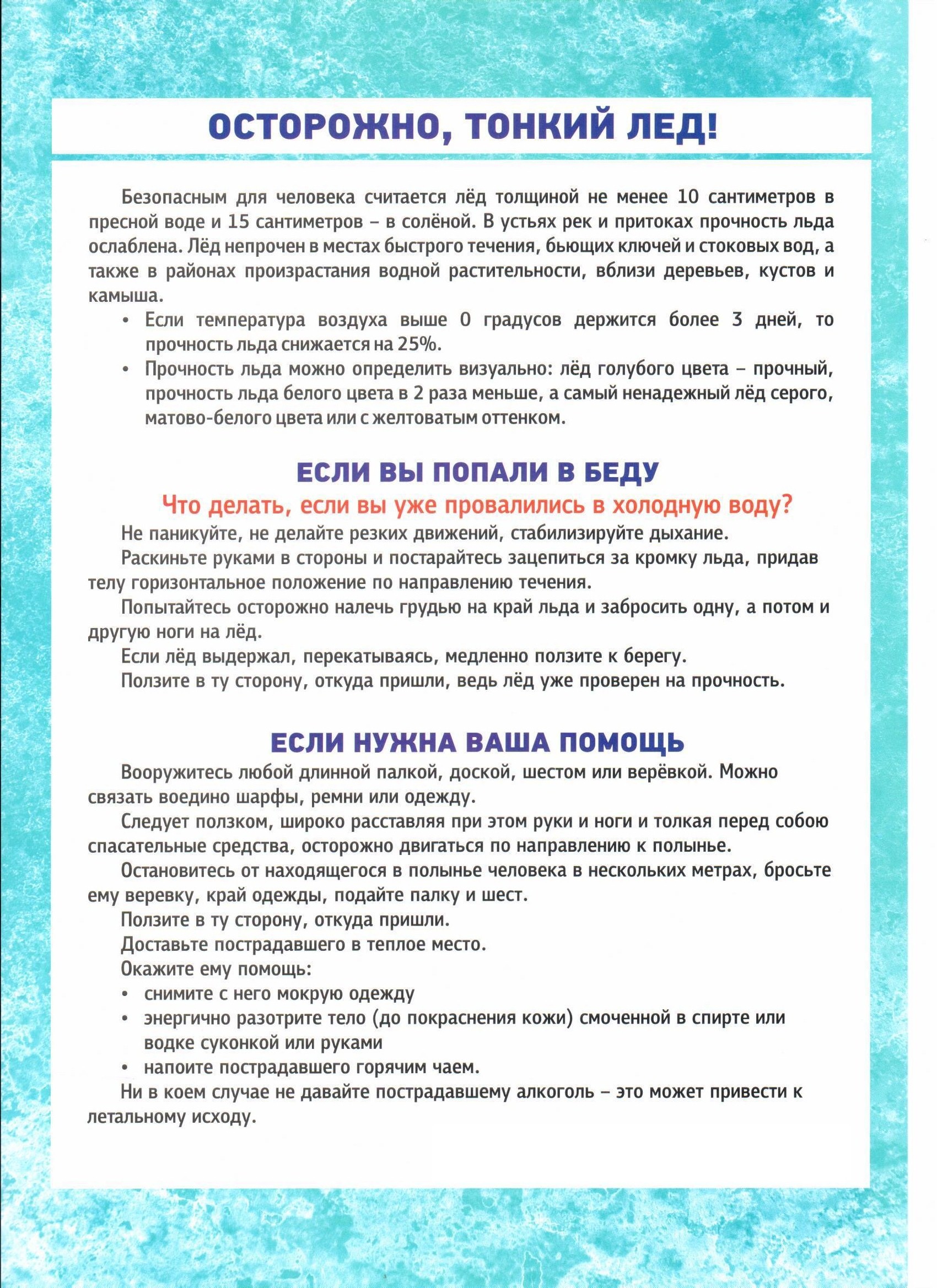 Памятка: "Осторожно: ТОНКИЙ ЛЁД!"