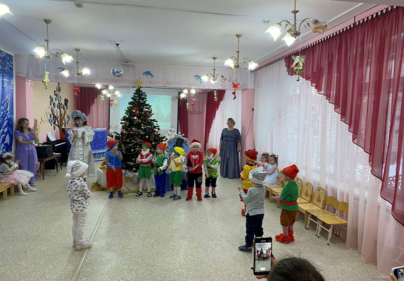 С появлением Деда Мороза и Снегурочки начался настоящий праздник с песнями, танцами и играми, хороводами вокруг ёлки. Дети читали стихи Деду Морозу и Снегурочке, фотографировались с персонажами, получали новогодние подарки. У нас получился радостный, весёлый праздник, где всем детям было интересно и весело.