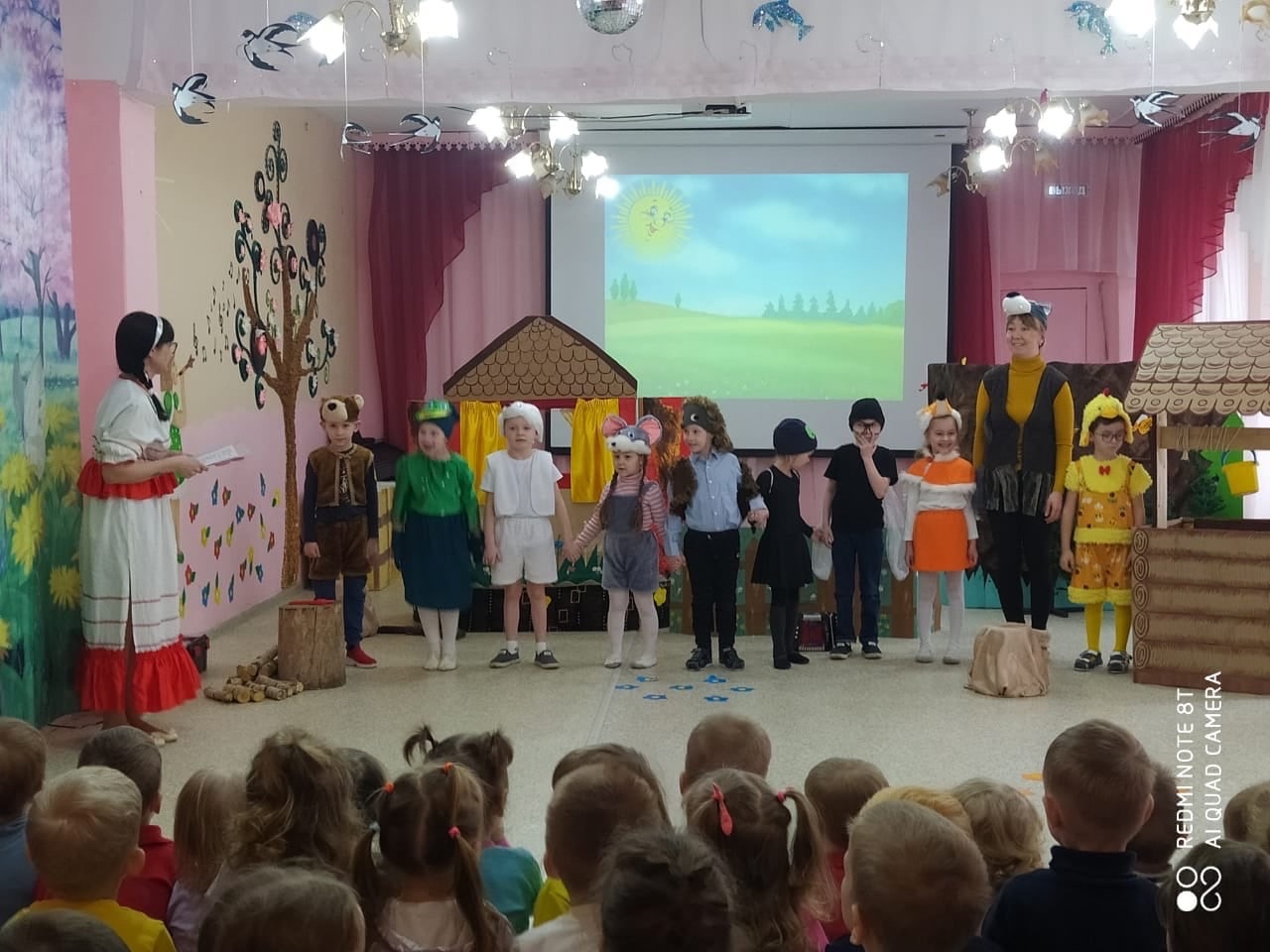 В этот день свою театральную постановку "Теремок" по сказке С. Я.Маршака воспитанники групп № 11 и № 10 показали детям из других групп. Игра актёров очень понравилась зрителям. Свидетельством тому стали долгие бурные аплодисменты.