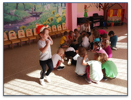Успели помочь Зайчику навести порядок в комнате. Пригласили его в веселую подвижную игру «Лиса и зайчики».
