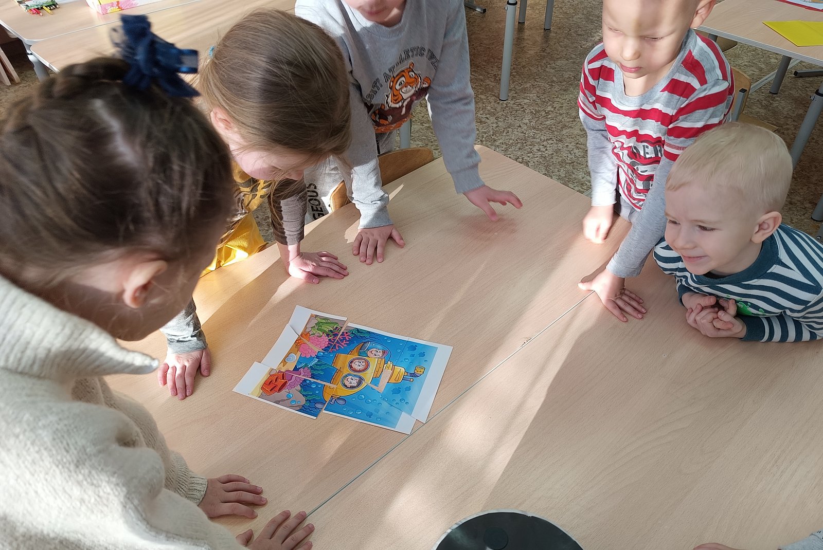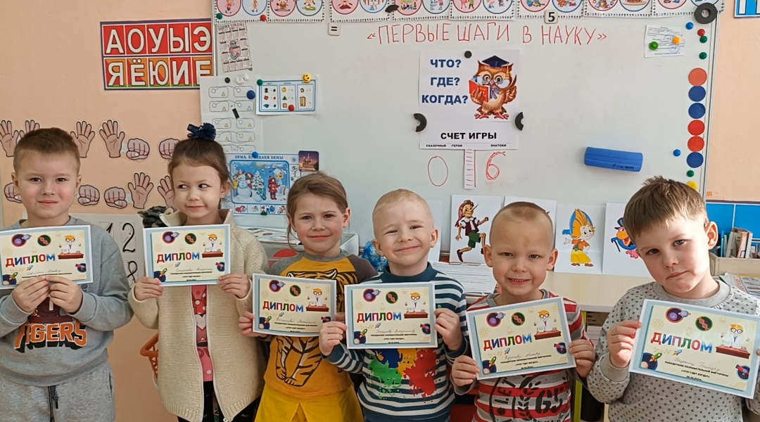 8 февраля в группе компенсирующей направленности прошла познавательная интеллектуальная игра «Что? Где? Когда?». Ребята были знатоками, а вопросы им задавали сказочные герои. Дети отгадывали загадки про сказочный транспорт, решали стихотворные задачи , угадывали по описанию, что находится в черном ящике и собирали пазлы. Конечно, как и в настоящей игре была замечательная музыкальная пуза. Конечно наши знатоки победили сказочных героев со четом 6:0 и получили Дипломы победителей познавательной игры «Что? Где? Когда?».