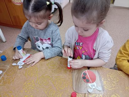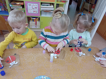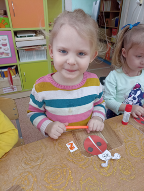 Так же воспитанники сами своими руками смастерили дидактическую игру «Посади божью коровку на листок», в которую мы будем играть с ними для закрепления навыков счета в пределах 5 и развивать умение сравнивать количество предметов.
