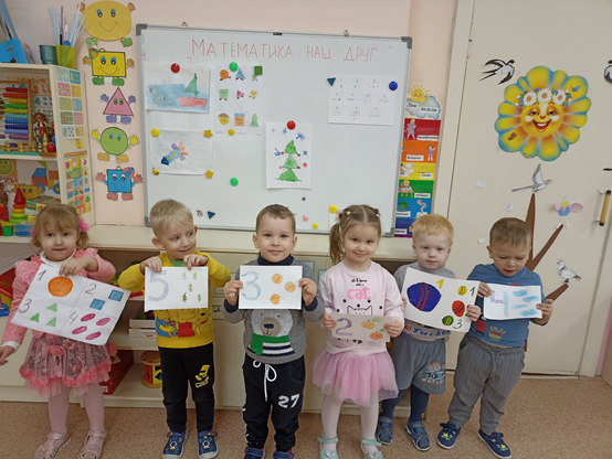 В своих рисунках дети отразили такие математические понятия, как цифра и соответствующее ей число предметов, смогли нарисовать предметы окружающего мира, составив их из различных геометрических фигур. С удовольствием рассказывали, из каких фигур они составили рисунки.