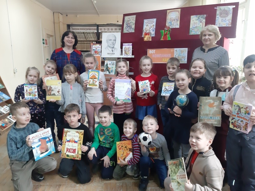 Сотрудники библиотеки познакомили ребят с биографией писателя. Ребята вспомнили героев его произведения, узнали о том, что кроме стихов, басен, детских песен и сценариев к мультфильмам он сочинил слова к Гимну РФ.