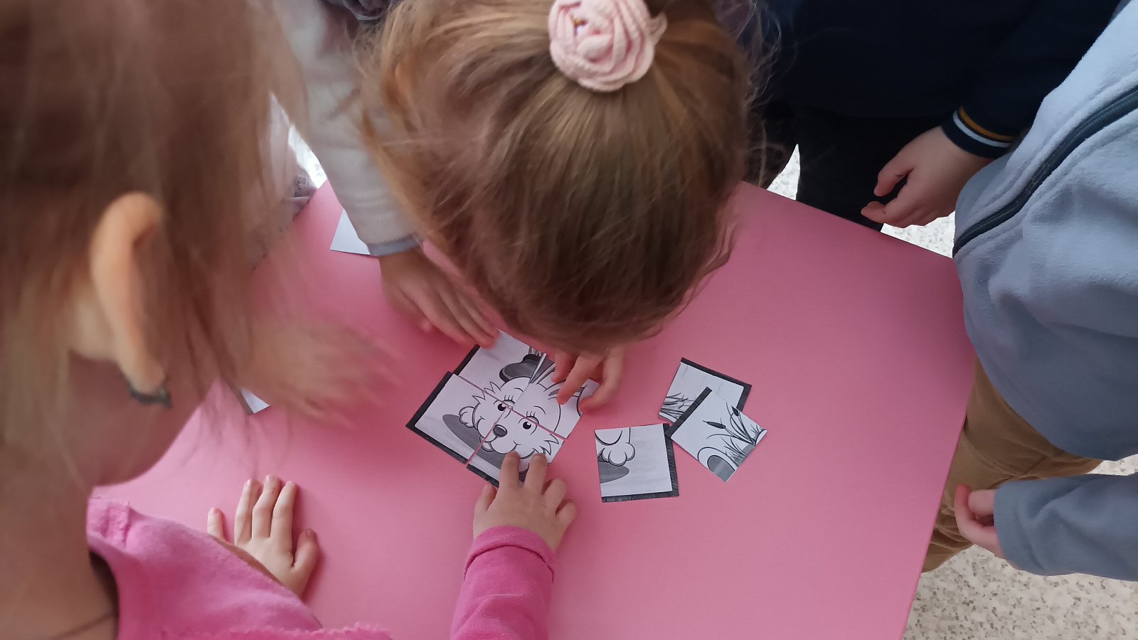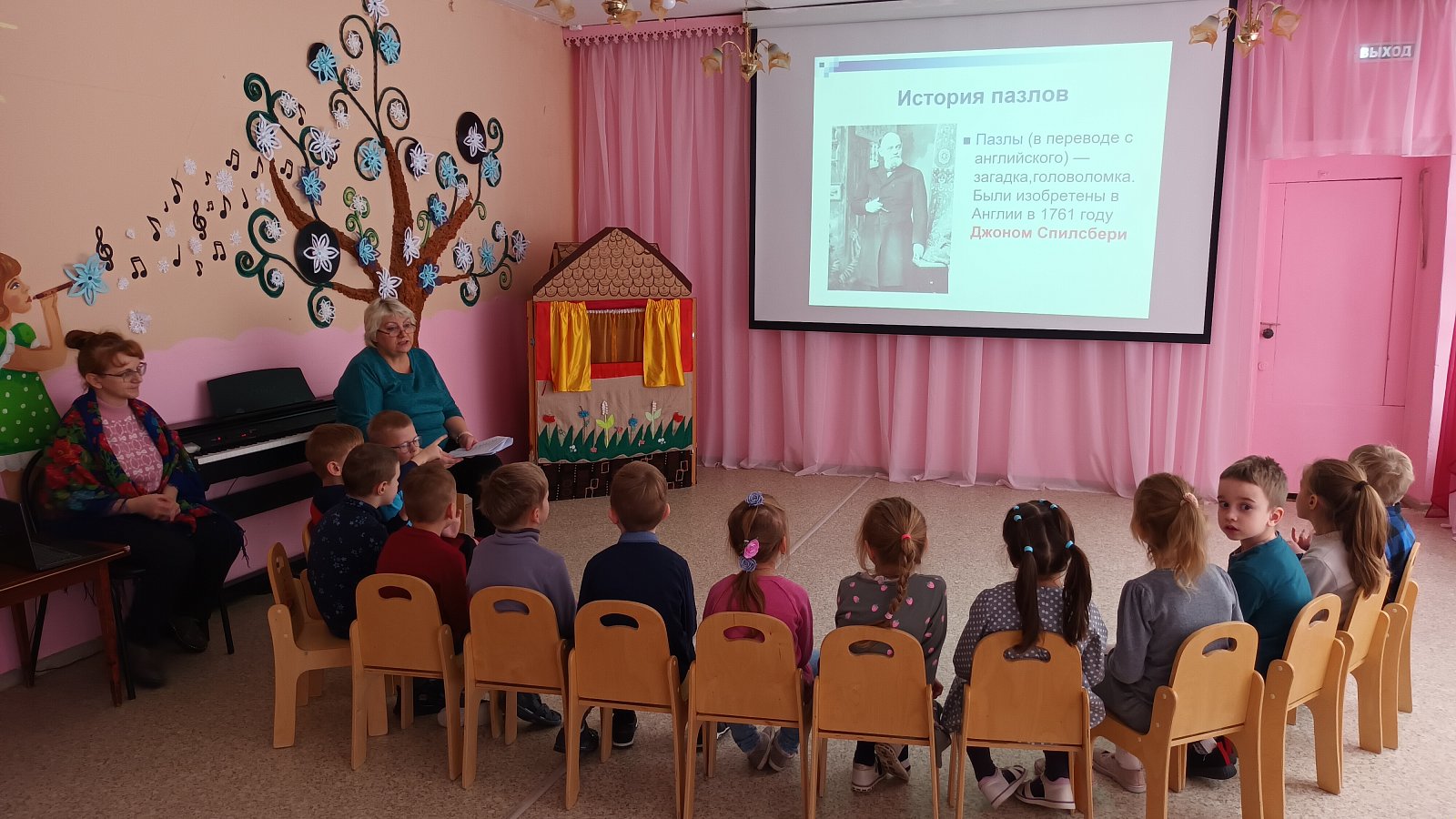 29 января воспитанники подготовительной группы "Фантазеры" приняли участие в развлечении в виде квест-игры "День пазлов и головоломок". В группе ребята обнаружили, что все книжки со сказками в книжном уголке исчезли.А вместо книг было письмо от Бабы Яги, в котором она просит ребят выполнить все игровые задания и разгадсть волшебное слово, и только тогда она вернет детям все книги.