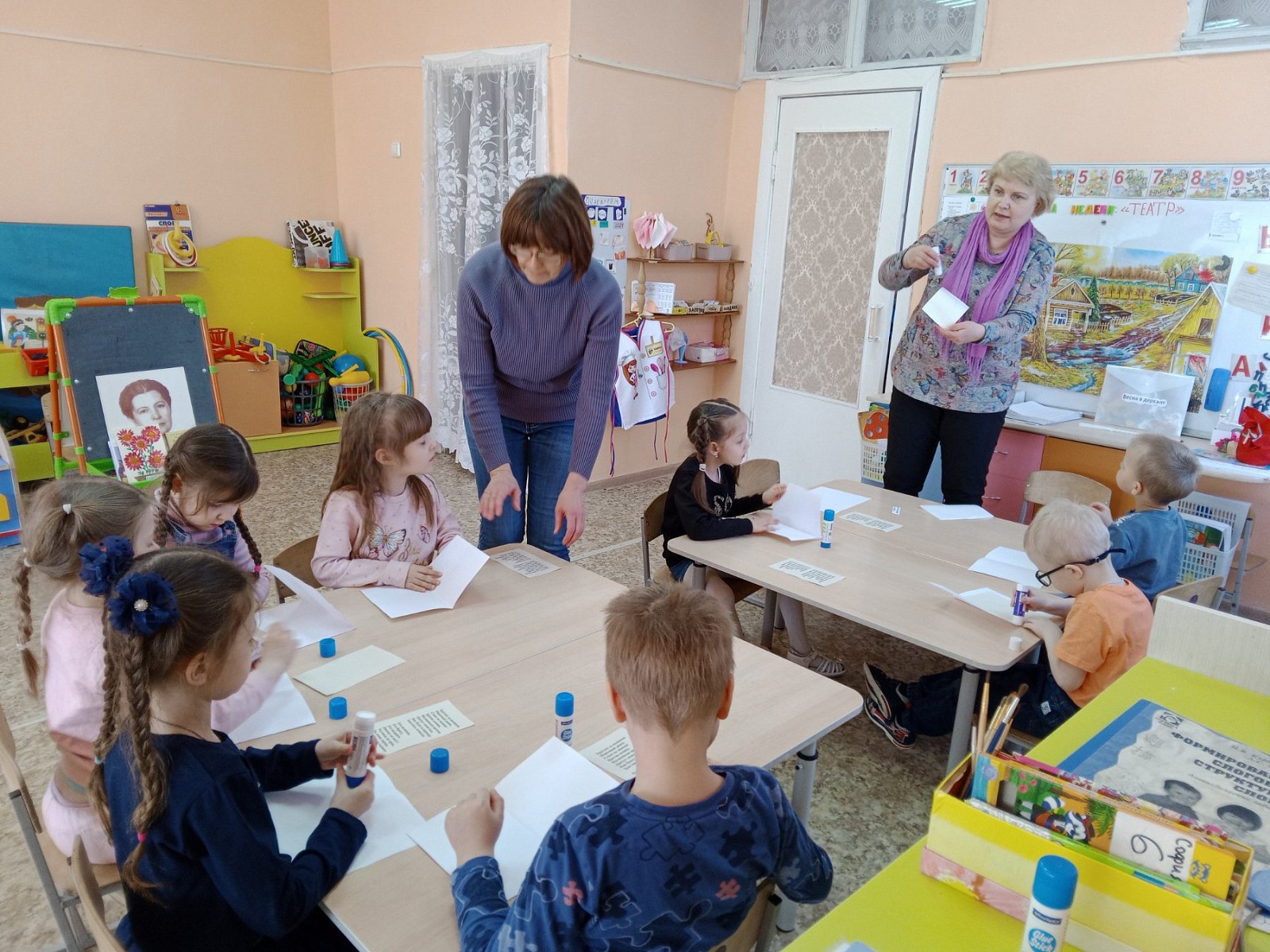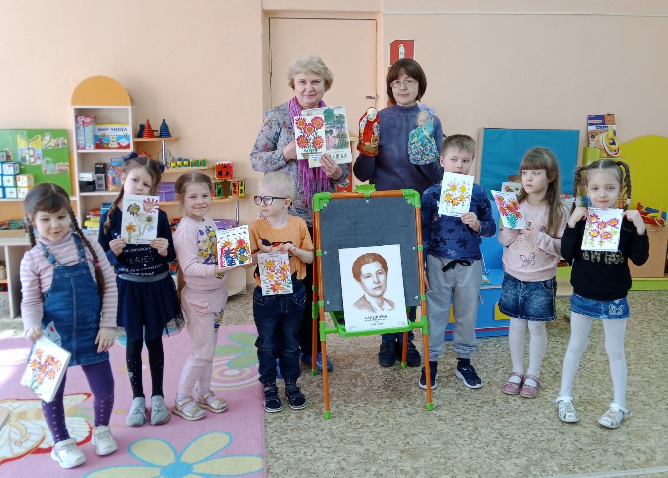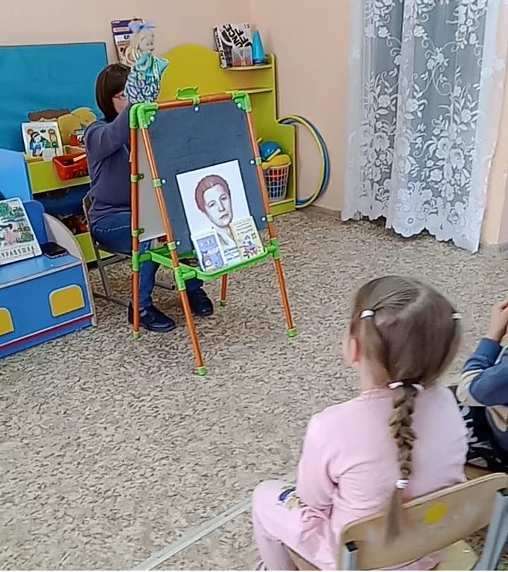 29 марта в группе компенсирующей направленности побывали гости - работники библиотеки - филиала №4. Они принесли в группу "волшебство" и познакомили детей с творчеством Елены Благининой. Ребята смотрели подготовленное гостями представление кукольного театра и внимательно слушали их. А после, своими руками, дети создали книжку-малышку с творчеством Елены Благининой, которую украсили живописными акварельными цветами. Каждый ребёнок остался довольным.