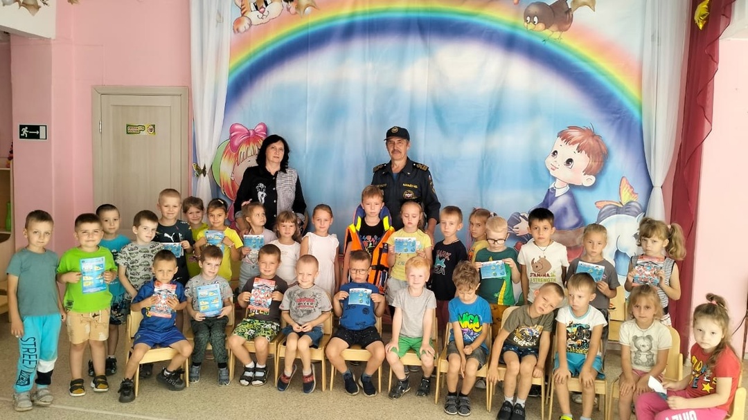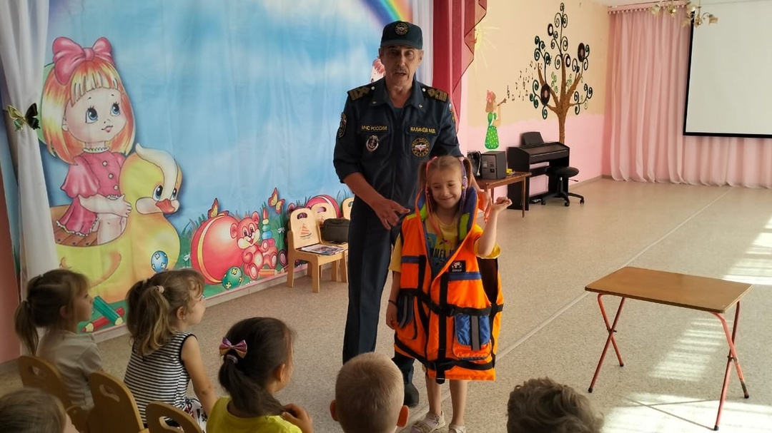 В рамках месячника "Безопасность детей на водных объектах" с целью пропаганды соблюдения правил поведения на воде сегодня в нашем детском саду прошла встреча с Калачевым Михаилом Валентиновичем, представителем ГИМС Владимирской области. Михаил Валентинович провел с детьми познавательную беседу о правилах безопасного поведения на водных объектах.