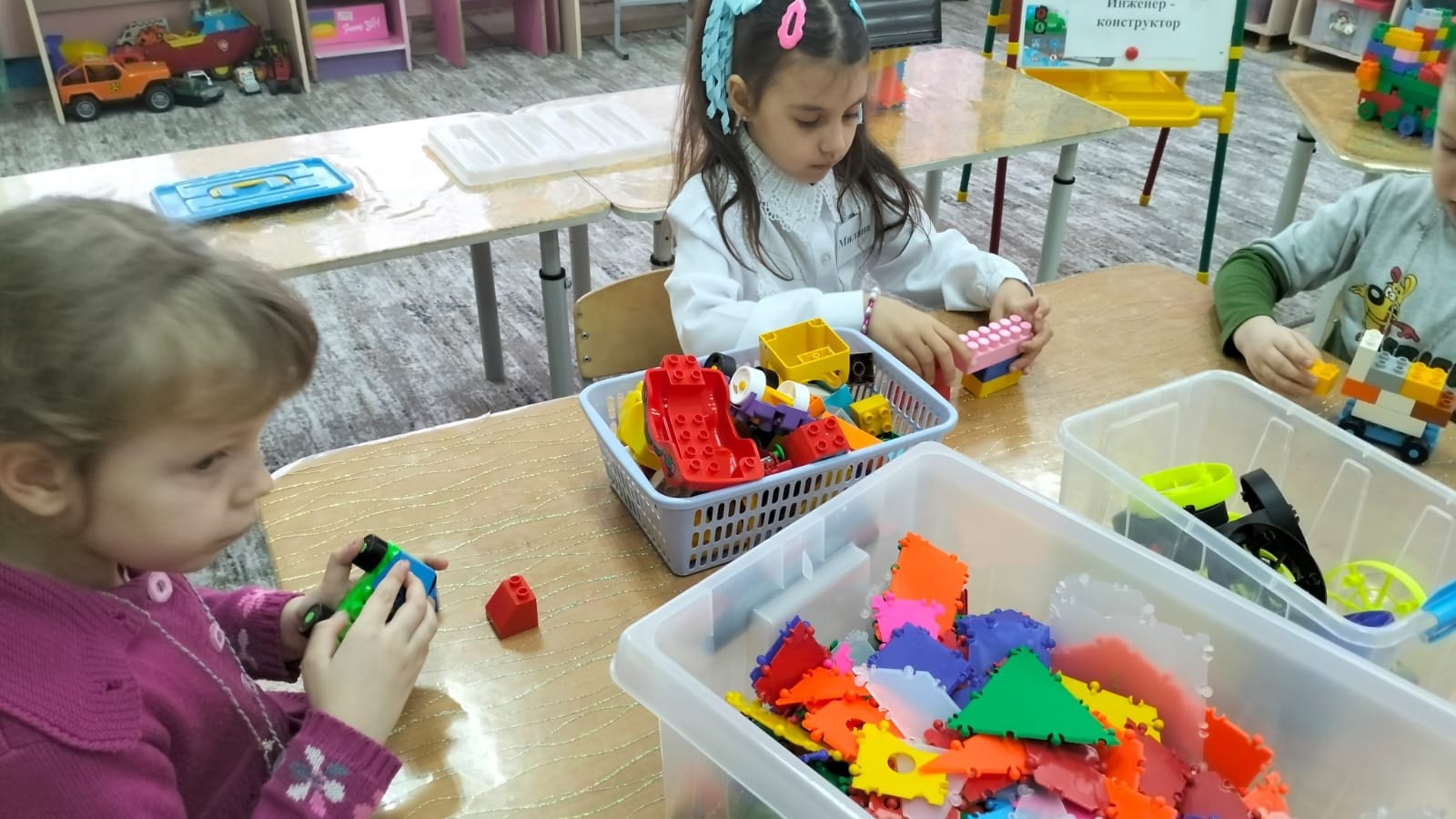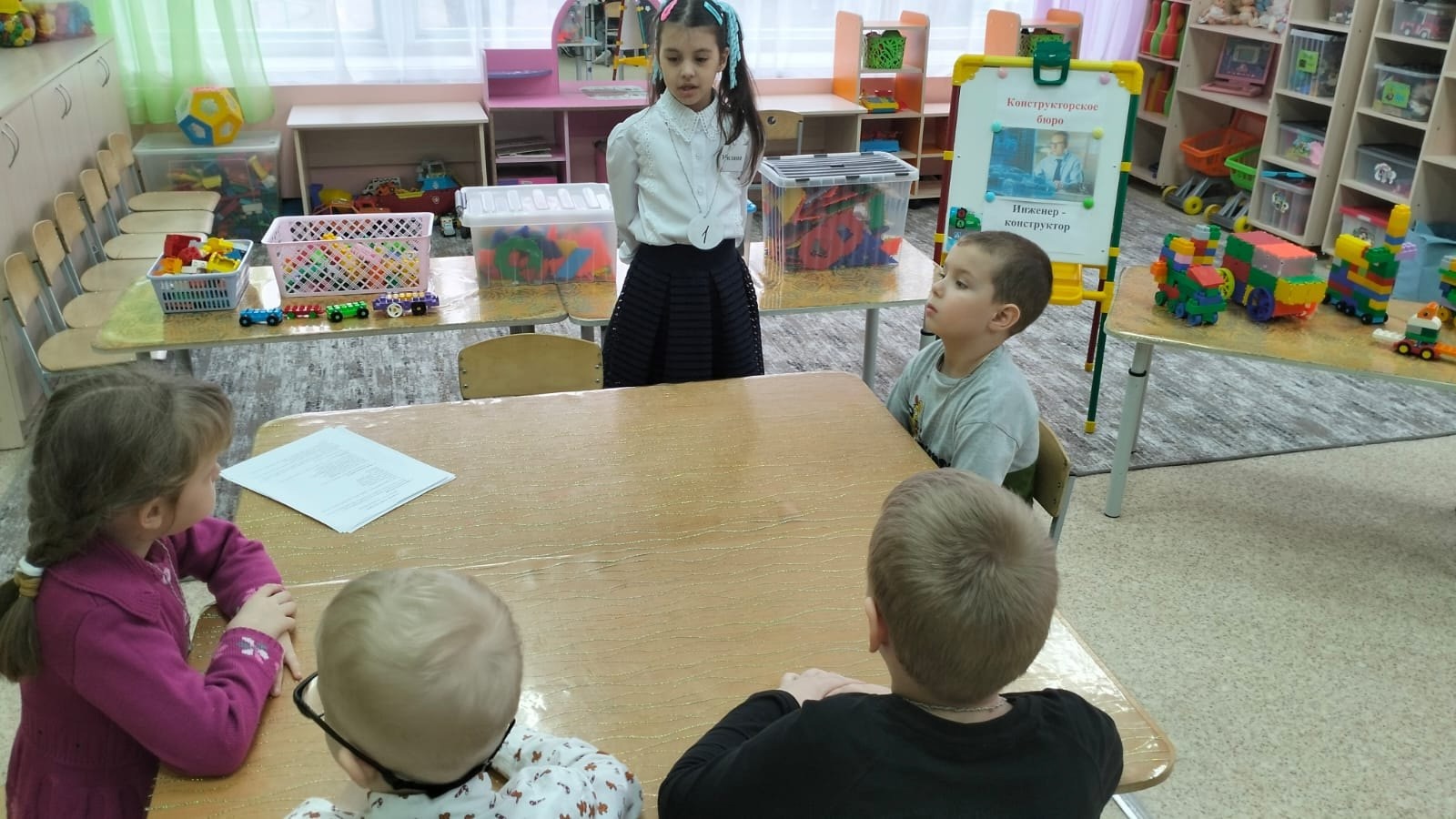 Воспитанница подготовительной группы 4 Милана Муханова стала участницей муниципального фестиваля детских мастер-классов "Город мастеров" в номинации "В конструкторском бюро" .Милана рассказала о профессии инженер. Показала детям выставку ,"Такие разные машины" , предложила ребятам стать инженерами- конструкторами и сконструировать из разного Лего машины. Интересные работы были сконструированы их тико-лего. Ребята проявили творчество, фантазию и пополнили выставку своими работами.
