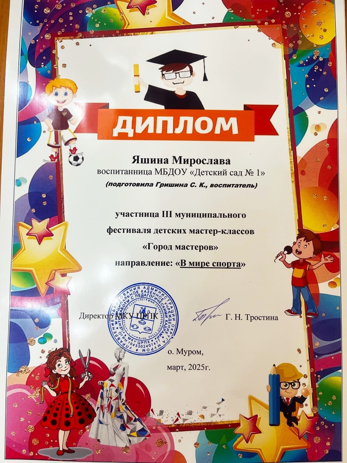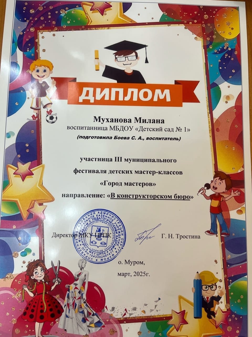 Победители в lll муниципальном фестивале детских мастер-классов "Город мастеров"