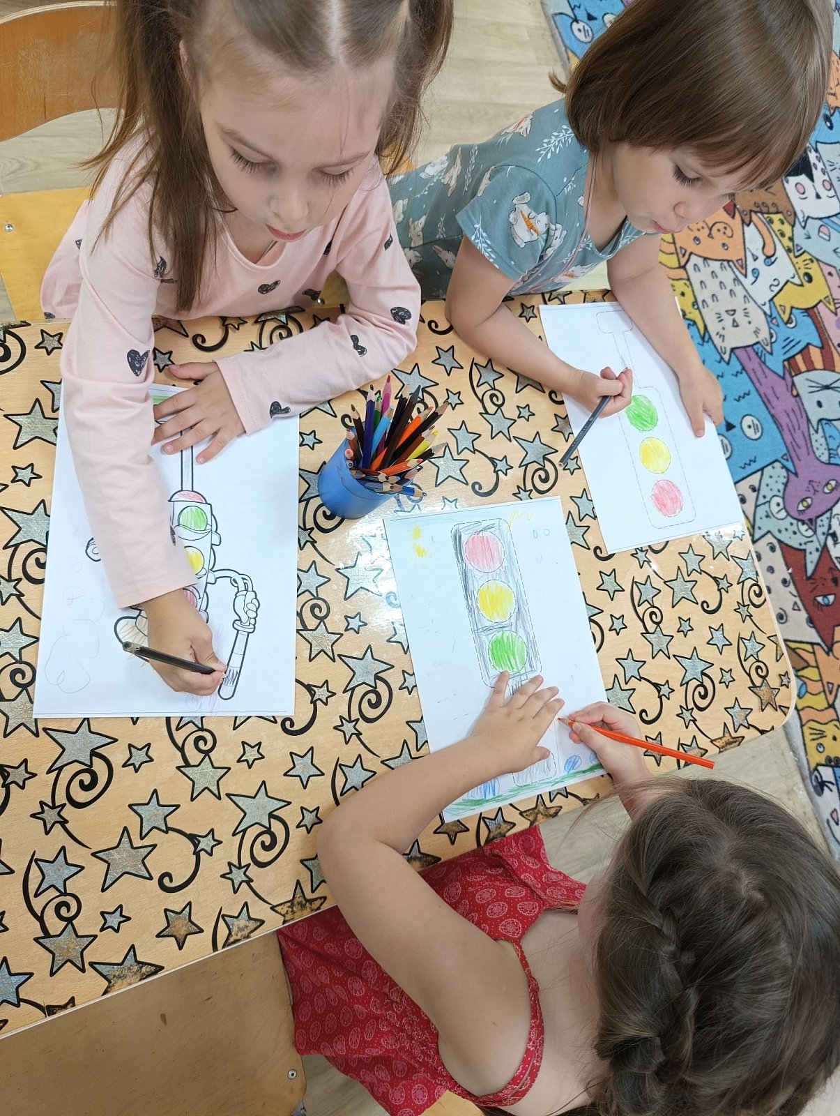 Ребята с удовольствием участвовали в беседе, отвечали на вопросы интерактивной презентации, закрепляя значение сигналов светофора и принципы его работы. С большим интересом поиграли в игру «Запрещается — разрешается». А в творческой мастерской каждый смог проявить свою фантазию, изобразив свой любимый светофор!