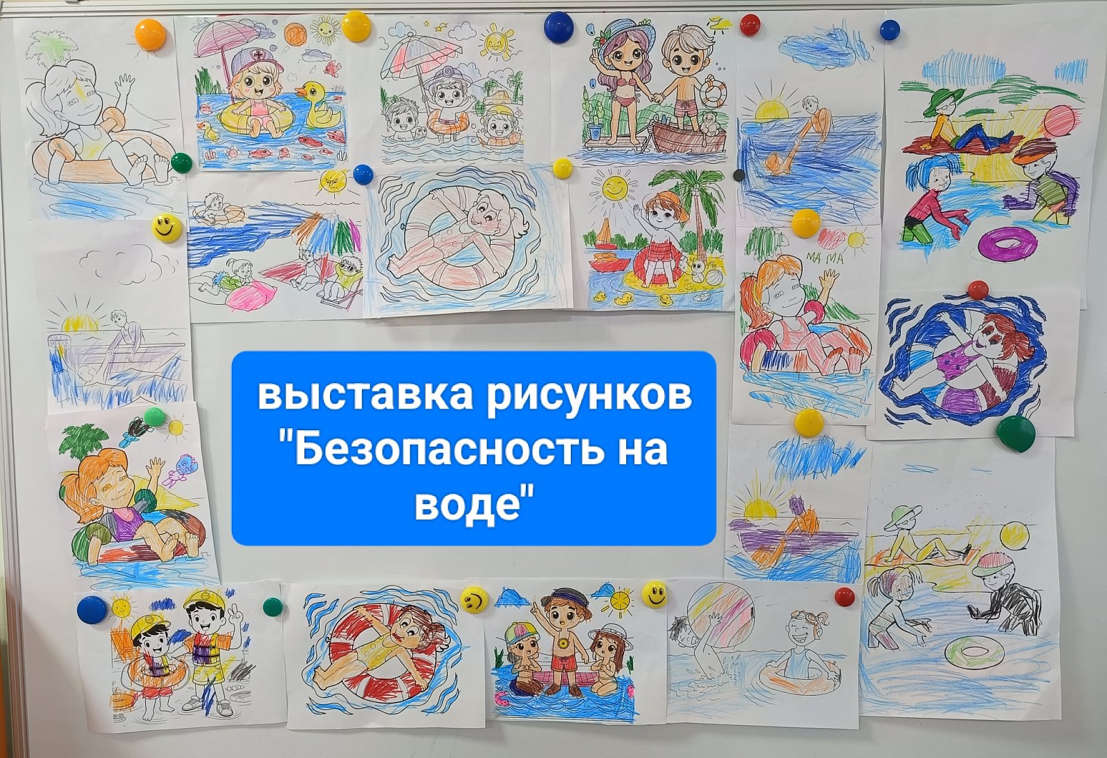 С целью пропаганды знаний в области безопасного поведения на воде и водных объектах в летний период, поддержки и развития творческих способностей детей в детском саду была проведена выставка рисунков на тему: «Безопасность на воде глазами детей» в рамках акции "Вода - источник повышенной опасности" .