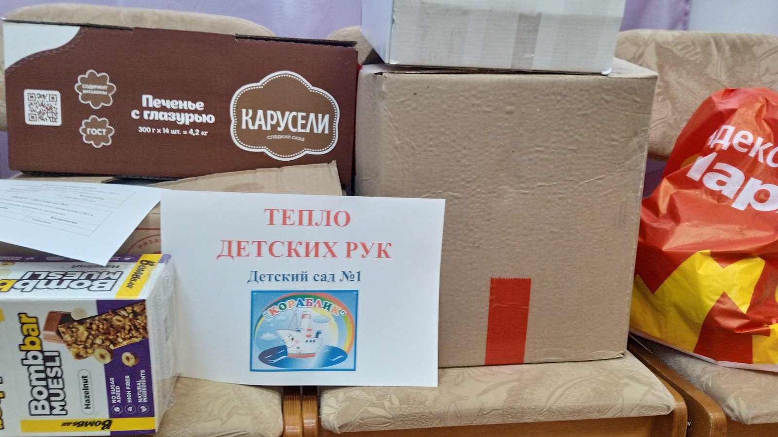 Родители, дети, сотрудники нашего детского сада в преддверии Нового года приняли участие в акции « Тепло детских рук». Собранные подарки передадут частичку домашнего уюта и душевного тепла военнослужащим, находящихся в зоне проведения СВО и проходящим лечение в госпитале. Открытки, нарисованные детьми, поделки напомнят военнослужащим о том, что дома их любят, ждут и верят в них.