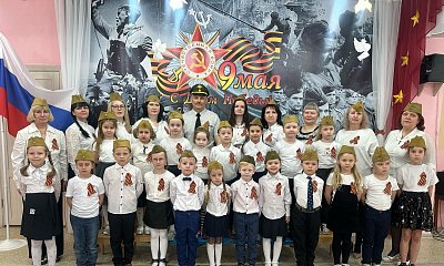 Педагогический коллектив вместе с воспитанниками исполняют песню В.И. Шестаковой «Салют Победы».